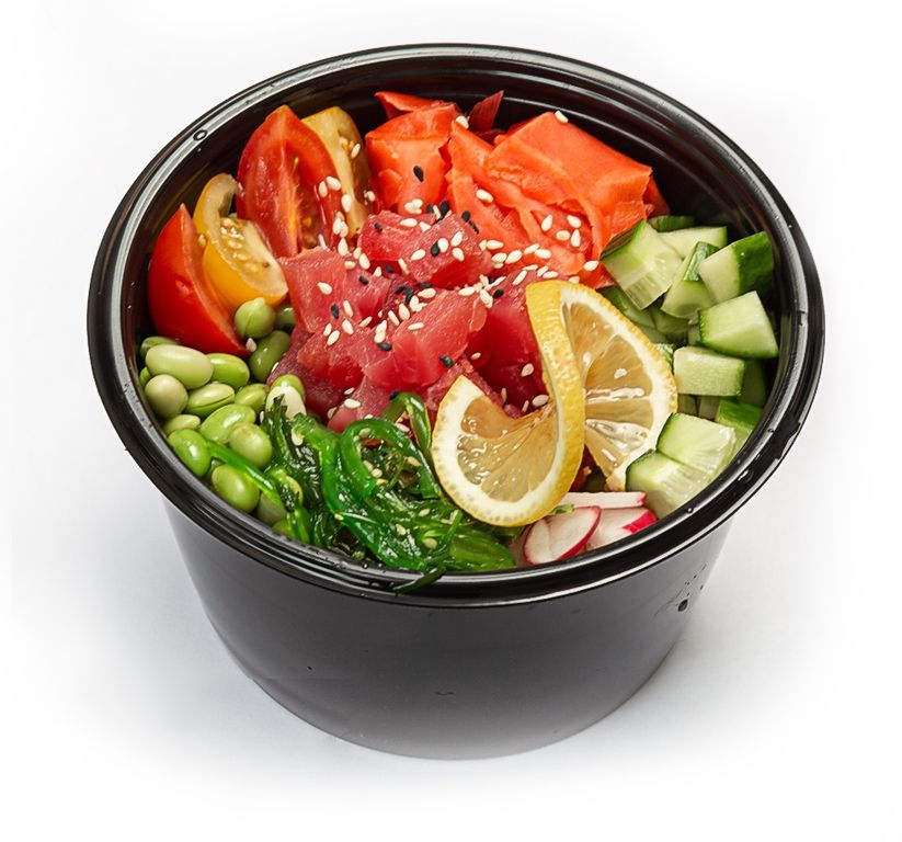 ПОКЕ с тунцом 519 ₽ В корзину Купить в 1 клик В корзину Купить в 1 клик Состав: рис, тунец, имбирь, чука салат, бобы эдамаме, поке соус, овощи. Состав: рис, тунец, имбирь, чука салат, бобы эдамаме, поке соус, овощи.