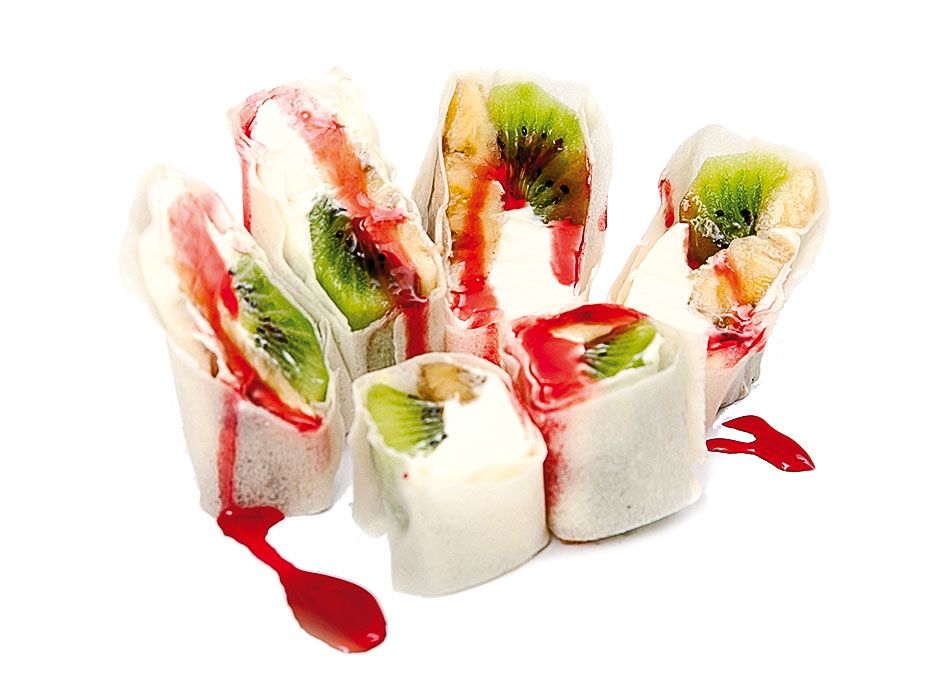 ФРУКТОВЫЙ РОЛЛ 339 ₽ В корзину Купить в 1 клик В корзину Купить в 1 клик Состав: спринг тесто, крем сливочный, банан, киви, топинг клубничный. Состав: спринг тесто, крем сливочный, банан, киви, топинг клубничный.